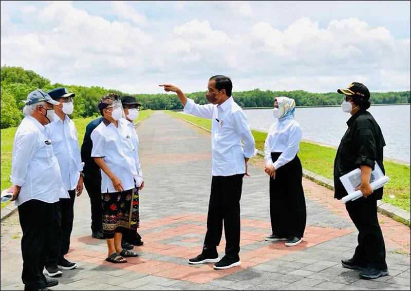在现场观赛的印尼总统佐科与运动员一起享受举杯的喜悦,并当场和选手们过招,秀了一把过硬的球技。 佐科总统与印尼国手乔纳坦·克里斯蒂组队双打,对手是与印尼羽毛球队队长亨德拉以及印尼羽毛球协会主席阿贡。赛后,队长亨德拉称赞佐科的羽毛球打得很好,甚至笑称和总统对战,比对阵世界排名第一的印尼双打组合苏卡穆乔/马库斯更难。 四、佐科维总统周四(2/12)视察了巴厘岛的红树林保护区。他希望在不久的将来可以邀请二十国集团(G20)成员国领导人一起来到现场。