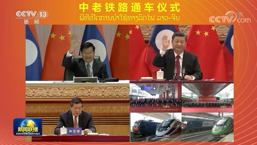 中共中央总书记、国家主席习近平12月3日下午在北京同老挝人民革命党中央总书记、国家主席通伦通过视频连线共同出席中老铁路通车仪式。