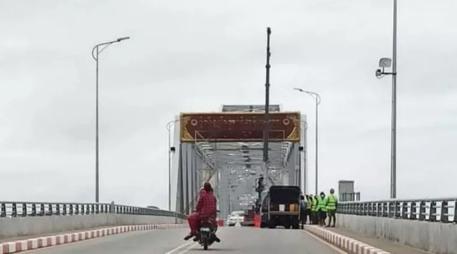 二.孟邦消息,5月30日,连接羌松-毛淡棉的跨江昂山将军桥的牌匾,红色的底色已经改成了绿色。今天(5月31日),国管委将把昂山将军桥更名为单伦桥(羌松)。