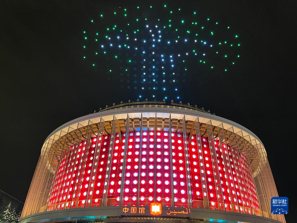 中国 这是10月4日在阿拉伯联合酋长国迪拜拍摄的迪拜世博会中国馆大型主题灯光秀。