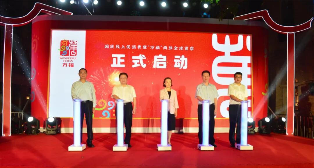 迪拜世博会中国馆自10月1日开馆以来,每晚上演的大型主题灯光秀受到游客的欢迎。灯光秀以“华夏之光”为主题,通过中国馆外墙上1312块LED发光体与150架无人机的矩阵表演相配合,实现大范围的动态视觉效果,为游客献上一场震撼的视听盛宴。新华社记者苏小坡摄 二.福建-国庆线上促消费暨“万福”商旅全球首店启动仪式成功举办