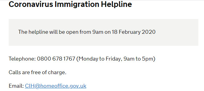 居留在英国、由皇家属地授予移民身份的中国公民 如果您是持有英国皇家属地批准的签证、居留在英国的中国公民,并且签证有效期在2020年1月24日至2020年3月30日之间,则应联系冠状病毒移民服务专线,讨论您的情况。 在英国转Tier 2签证 如果您是持有Tier 2公司内部转移签证(Tier 2 Intra-Company Transfer visa)、在英居留的最中国公民,并且想要转换为Tier 2普通类别签证(Tier 2 general),通常需要返回中国进行申请。 但如果您的签证的有效期在2020年1月24日至2020年3月30日期间,你可以在英国境内完成转换。 但除了可以在英国境内转换的“特权”外,您仍然需要支付相关费用并满足Tier 2签证的所有要求。 护照在中国签证申请中心(VAC)的英国公民 英国在中国的签证申请中心目前全部关闭。因此无法从北京,上海和广州签证申请中心转移、收取任何文件和您的身份材料、护照等。 如果您需要紧急旅行,可以申请紧急旅行证件。链接如下: https://www.gov.uk/emergency-travel-document 英国内政部目前正在密切监视签证中心的状况,并保证一旦签证中心重新开放,立即优先处理所有文件退还工作。 护照在签证申请中心(VAC)的中国或第三国公民 英国在中国的签证申请中心目前全部关闭。因此无法从北京,上海和广州签证申请中心转移、收取任何文件和您的身份材料、护照等。 如果您需要紧急旅行,请联系中国当局或您在中国的领事代表,以获取其他旅行证件。只有拥有有效的旅行证件,才有可能被发放紧急签证。 英国内政部目前正在密切监视签证中心的状况,并保证一旦签证中心重新开放,立即优先处理所有文件退还工作。 Tier2,4,5签证持有者“缺席” 一部分持有Tier4学生签证、或Tier2/5工作签证的雇员可能由于疾病无法参与学习或工作;或因为疫情需要隔离一段时间、造成出行限制而无法参加学习或工作,在这种情况下: 1.如果是因为疫情导致,那么赞助人(雇主)无需向移民局报告他们的缺席; 2.如果存在以下特例情况,雇主无需撤销赞助这些人的签证: 学生将无法参加超过60天的课程 雇员无薪缺勤四个星期或更长时间 是否终止学生的学业、或终止与雇员的工作合同,由雇主决定;对于由于疫情造成的上述特殊情况,移民局将不会干扰雇主作出的决定。 不过,内政部将对此进行审查,特别是如果缺勤时间过长导致需要重修学业等。 其他移民类别 对于与冠状病毒有关的任何其他移民查询,您可以联系冠状病毒移民帮助热线。 冠状病毒移民服务专线: 咨询热线将于2020年2月18日上午9点开放 电话:0800 678 1767(星期一至星期五,9:00-17:00) 特此补充-普通访问签证 在今日公布的最新临时指南中,唯一没说的细节是:持有访问签证在英的中国公民如何处理签证问题。 在这方面,英国唐顿国际的移民团队第一时间就与移民局取得联系并得到答案: 如果您的签证没过期但在英时间已经达到180天期限(或者临近),我们认为等同于第一种情况,在一月24到三月30号间不记入180天数的期限。 至于四月后如何处理,我们相信届时会有新的指南出台,指导大家如何处理,因此放心即可。