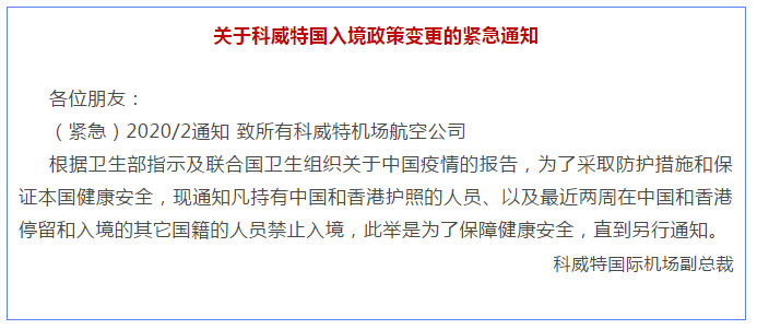 科威特:持中国护照者暂不能入境