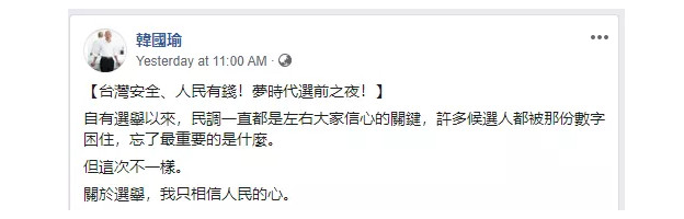 而韩国瑜“政治零分、经济一百分”的朴实论述也深入人心。