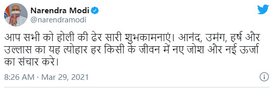 莫迪总理在Twitter上说:“祝大家节日快乐”。这一欢乐,欢腾的节日应为每个人的生活注入新的活力。”