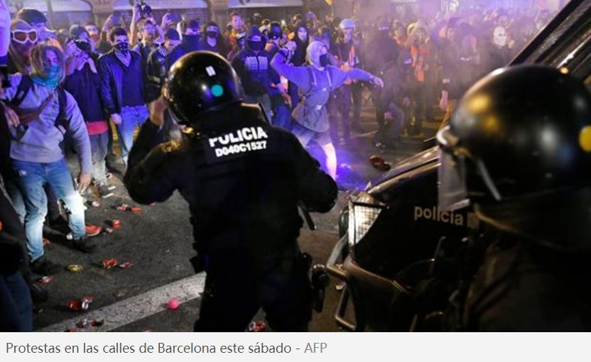 这次数以千计的加泰地区激进分子走上街头,和警方发生正面的武力冲突。现场一片混乱不说,这次很多激进分子都向警方扔事先准备好的石子,鸡蛋,甚至是一些非常有攻击性的物品...他们还试图攻击警车,暴力再次升级...这些人大部分都身着黑色衣服,蒙着面,在巴塞罗那的闹市区和市中心展开比之前更加严重的“破坏”...从图片中可以看出,已经有发现流血事件... 据报道称,la Vía Layetanala和 plaza Urquinaona现在已经乱得堪比“战场”,在此提醒附近的华人,一定要注意安全,如果有在附近经营店铺,提早关门,谨防暴力事件的发生。目前暴乱仍在继续,但警方已经逐渐控制住了局势,虽然是周六日,也请华人朋友们注意近日少出门,注意自身安全!