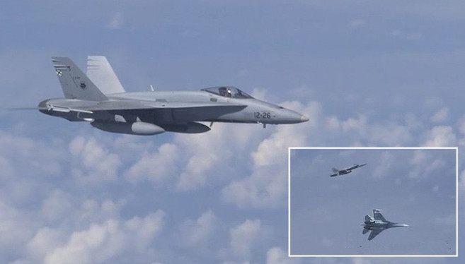 据俄罗斯塔斯社最新报道,日前俄罗斯国防部长绍伊古大将乘坐专机回国之际,在波罗的海上空遭到了北约成员国西班牙空军一架F18战机的拦截,而且这架F18战机还公然对绍伊古大将的专机亮出导弹。 然而,就在这架F18 战机准备进一步接近绍伊古大将专家时,俄罗斯空军两架苏27战机立现身相关空域,并且对这架F18战机进行了驱赶,随后两架苏27全程对绍伊古大将的专家进行了护航,而西班牙空军的F18战机在看到无法进一步靠近时,只能无奈调转机头返航。