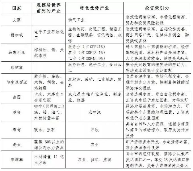 东盟十国产业结构和投资吸引力