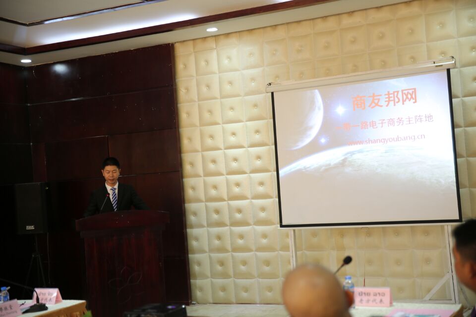 2017年11月19日,老挝人民民主共和国琅勃拉邦省,福建商友邦网络科技有限公司首席执行官何辉发表题为【商友邦网,线上一带一路的践行者】的主旨演讲。