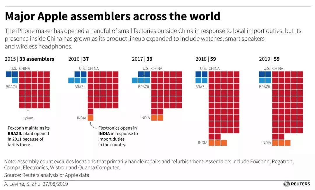 继巴西与美国的建厂计划遇阻后,富士康在印度的新厂也不打算开了。 1月7日,印度马哈拉施特拉邦(Maharashtra)工业部长苏巴什.德赛(Subhash Desai)称,与富士康在当地合作建立电子产品制造工厂的计划已经取消。 根据德赛的说法,富士康已决定不再像2015年与政府签署的协议中所写的那样,在印度投资50亿美元。而取消合作的原因,是“富士康与苹果公司产生了内部纠纷”。 富士康曾与印度达成协议,计划到2020年在印度建立10-12个工厂,用于消费电子产品的生产。但据德赛所说,“富士康当初做出的投资承诺没有兑现,将来也不会兑现。” 富士康随后回应称,“与苹果产生‘内部纠纷’的报道是不真实的,印度的生产计划正在向前推进。”但并没有否认新厂不打算开了的说法。 这两年富士康频频传出去海外建厂的消息,但很多备受瞩目的项目并没有像预期中的那样顺利落地,而是胎死腹中。 2018年,富士康总裁郭台铭与特朗普一起为美国威斯康星州的新厂举行动工仪式,2019年,该工程传出停摆的消息。 需要注意的是,虽然困难重重,但富士康的出海大计并非全盘皆输。根据给投资者的简报,富士康在巴西、墨西哥、日本、越南、印尼、捷克、美国和澳大利亚等国都设有工厂。 只不过这些工厂大多并不生产苹果公司的产品,或者产量非常小。而苹果的生意恰恰是富士康最赚钱的业务。 “不把所有鸡蛋放在一个篮子里是商业的黄金法则。”富士康印度业务负责人Josh Foulger说。 这话没错。事实上富士康大部分的鸡蛋一直都集中在中国的篮子里。2019年,富士康新任董事长刘扬伟称,富士康仅约25%的生产能力位于中国以外地区。 但是中国的篮子正在发生变化。 催动变革的一个最直接的原因是中美摩擦——在中国组装好的iPhone在进口美国时可能要承担附加关税,这给富士康和苹果带来成本危机。根据年报,在苹果的长期资产中,中国资产占到了 30% 以上。这些长期资产主要指的是产品加工和制造设备、零售商店以及相关基础设施。 第二个原因是新兴市场正在通过加增关税的方式逼苹果来建厂。以印度为例,这个国家在过去两年里,先给所有从国外进口的手机整机加增10%的基本关税,再将关税从10% 提高至15%,再从15% 提高至20%。 在小米等中国手机公司拆整为零,不进口整机而进口零件,然后在印度境内组装后,印度政府又开始对手机核心零部件征收10%-15%的关税,逼它们直接在印度国内买零件。 苹果的境遇也一样,要么在印度建厂,要么承担高出来的关税成本,要么把印度市场拱手让人。 第三个原因是中国人力成本的上升。中国统计局数据显示,中国制造业工人的平均年薪在2012至2017年期间,上涨了50%。而印度的工人薪金比中国便宜约三分一。 最后,中国市场正在被更急眼的竞争对手吞食。2019 年下半年,特朗普的一纸禁令使得华为手机海外销售大受影响,逼得华为反过来猛攻国内市场,包括苹果在内的其他手机品牌在国内的份额被大大吞食。 据调研机构Canalys 报告,2019年Q3,华为在国内智能手机市场的份额已经达到42%。同时期,Counterpoint Research的报告显示,华为占据了中国超过八成的高端智能手机市场份额。 1.政局不稳,经济形势差 巴西是富士康出海造苹果的第一站。 2011年,富士康进入巴西,宣布了数十亿美元投资计划,并表示将帮助巴西创造十万个就业岗位。按照当地媒体Istoe Dinheiro当时的报道,在巴西圣保罗市,富士康已经建设了全世界第二大规模的苹果手机生产线。 但到2017年时,富士康仅在巴西雇佣了约2800名工人。作为对比,同时期的富士康郑州工厂雇佣了约35万名工人。 问题出在什么地方?在巴西,富士康得不到稳定政局的支持,也得不到稳步向上走的经济环境。 2011年时,力主支持富士康来建厂的巴西女总统迪尔玛.罗塞夫在 2016 年成为了世界上第一位遭弹劾的女总统,政府承诺过的一些税收优惠被减少或取消。 从罗塞夫就任总统的2010年开始,巴西GDP的年增长速度从近10%一路下滑,2012年出现了零增长的胶着状态。失业率和通胀率也震荡走高,到富士康关闭iPad生产线时,已经达到了巴西历史高位。 那么富士康在巴西建厂六年的效果如何呢? 一开始,据巴西媒体估计,当地组装可能使iPad或iPhone的价格降低多达30%,因为此前巴西对进口智能手机征收超过60%的税。 但是,富士康的出现并没让苹果产品的价格下降。iPhone 6发售时,在巴西的售价比美国售价高了97%。甚至,连按时发售都做不到。巴西消费者见到iPhone 4S时,已经比全球发售时间推迟了至少两个月。 2.基础设施缺乏,没有完整的供应链 印度的政治局势比巴西稳固,经济发展势头也好得多。而且这里还是智能手机品牌必争的最后一块蓝海。 2015年,富士康在斯里城开设了第一家印度工厂。这里雇用了1.5万名工人,以女工为主,日薪只有4美元左右。但她们组装的不是苹果,而是小米。 2017年,富士康的第二家智能手机工厂在南部泰米尔纳德邦 Sriperumbudur 产业园建立,雇佣1.2万名员工并决定于2019年首次在印度生产iPhone。 2019年10月,一个包装盒背面印着Assembled in India(印度组装)的 iPhone XR终于出现,富士康成功在印度造出了苹果手机。 但是在这里产出的苹果数量相比全球对苹果的需求而言,只是杯水车薪。路透社2019年8月经过调查后发布的报告显示,苹果在印度和巴西两国生产的产品只是用来满足当地需求,而在中国增加的苹果代