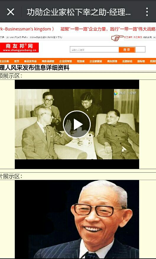 松下幸之助先生,他是享誉世界的松下电器创始人,号称经营之神,【事业部】【终身雇佣制】【年功序列】等日本企业管理制度都是他创造出来的。他为世界经济的发展与繁荣贡献了自身的智慧与力量,为慈善事业做出了积极的贡献,为中国的改革开放事业做出了积极的贡献。籍此,商友邦网特授予他为【功勋企业家】荣誉称号,永载商业史册。