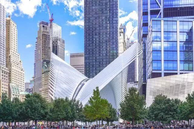 纽约世贸中心交通枢纽由西班牙知名建筑师加拉塔瓦(Santiago Calatrava)设计,将纽约11条地铁线路和新泽西贯穿起来,集换乘车站、购物中心和人行通道等多项功能为一体。取名The Oculus「眼窗」,设计概念是从一位孩童手中释放鸽子而来,已经成为纽约的著名新地标。