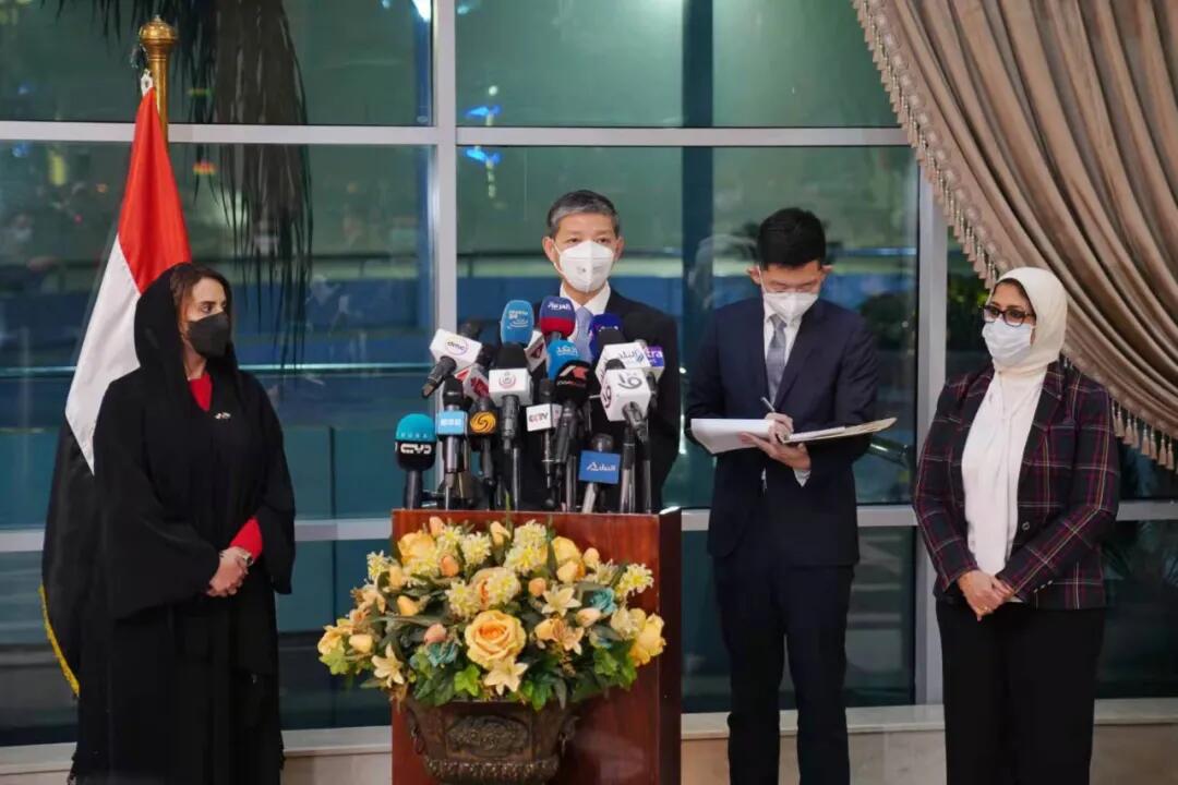 哈莱部长在现场举行的新闻发布会上表示,衷心感谢中国政府对埃及抗疫的全力支持。首批中国疫苗的到来对埃及来说是历史性时刻,埃及由此成为非洲大陆第一个获得新冠疫苗的国家。中国疫苗抵埃,标志着埃及同中国的友好合作关系达到新高度。中国疫苗是安全的,已在12月9日获得埃及卫生部的最终紧急批准。我们成功进行了临床试验,我本人也很荣幸亲自参与了这次试验。根据世界卫生组织的指导意见,我们将优先向医务人员和弱势群体接种中国疫苗。