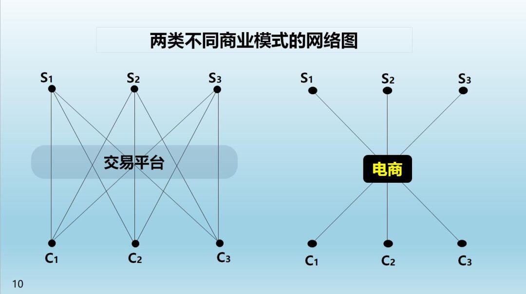 再看右边那张图,我们发现它的网络比左边更稀疏。因为在自营模式下,供应商不和消费者直接打交道,只和电商打交道,比如和亚马逊打交道。 因此,自营电商其实是很难做的。它尽管用的是互联网,但是借不上互联网的力,没有梅特卡夫效应,只有很有限的双边市场效应,也就是消费者和供应商之间的相互吸引。 自营电商的竞争对手不是交易平台,而是传统的线下超市。能不能竞争赢了,就看它能不能够利用互联网这项新技术,做到比传统线下超市效率更高。 自营电商和传统超市比,效率差太多了 到这一步,我们实际上已经把自营电商从互联网的范畴中移出来了,移到传统零售行业中来进行分析和研究。而在这个领域中,分析的主线就是规模效应和协同效应。 下面,我们就来对比自营电商和传统零售商在这两个效应上,各有什么样的优劣势。我们把传统零售业分成3个环节,采购环节、分拣环节和配送交付环节,来对比它和自营电商,看谁的效率高。 1)采购环节 在采购环节上,超市采购的品种有多少,零售业的术语叫SKU(可以把SKU数理解为商品种类的数量)。我们用Costco来举例看一下。Costco进入中国,据说上海把人家店给抢空了。它卖东西为什么便宜? 做零售的,SKU越少,越有利于集中批量在市场上拿到更低的价格。Costco的SKU也就是商品数只有三千。这意味着它在每一种商品上的采购量都是巨大的。Costco是专注做头部的。做头部的好处是采购批量大,可以在市场上用批量作谈判筹码,拿到最优价格。 零售是一个很苦很累的活,是靠价格低赚钱的。你不千方百计一分钱一分钱地算,在这个行业中赚不了钱。因为所销售的东西,青菜萝卜大米白面,在市场上根本没有差异化,零售商没有定价权,定价权在消费者手里。你能做的,就是千方百计把成本压下去。 当自营电商有几千万种商品的时候,我们所说的那种长尾商品,就是采购批量很小的,价格就跟Costco没法比,成本高得不得了。你采购10件的商品,哪个厂家愿意给你做?我敢说,100件也没有人给你做,除了单件价值非常高的一些装饰品、首饰等。 人家现代化工厂、大机器生产,一做就是上万件、几十万件。你在市场上采购的时候,批量越大,拿到的价格越好。因为人家厂家批量越大,单位成本越低。这看上去是采购的规模效益,实际上是供应商、在生产一侧的规模效益。 所以,在采购这个环节上,自营电商天然的要吃亏。 2)分拣阶段 传统超市的货进到库里以后,上传送带,整箱整箱地分拨到各个门店。超市外边等着的卡车,把整箱整箱的商品就拉到门店去了。 然后,你再把这些商品拼装成一个盒,上传送带,手工分拣,完了以后,外边快递小哥在等着,把每一个客户的单个订单放到车上,嘟嘟嘟嘟开着走了。 大家一看就知道,传统超市由于它的规模效益,在分拣配送上,效率又比自营电商高了一头。 3)交付阶段 在零售上,我们把交付阶段叫做最后一公里。传统零售商没有最后一公里的问题,因为它都是消费者自己完成的。消费者跑到商店里来,挑完货物了,到柜台上一结账,自己开着车、骑着车或走路回家了。而自营电商最后一公里要由小哥送到。 这里面成本的比较是什么?要开一个线下实体店的话,租金是多少,销售人员成本是多少;自营电商要算的账是,分拨仓、中心仓成本是多少,快递小哥成本是多少。 最后一公里是非常贵的。它虽然给客户带来了一种快捷的体验,但是,这个体验是要付钱的。天下没有免费午餐。亚马逊就长期为最后一公里感到苦恼,那是成本的大头,所以想了很多办法来解决。 京东为了解决最后一公里,开发了无人机。但这是解决方案吗?各位能想象小区上无人机飞来飞去吗?城市的空中交通怎么办呢?最关键的是,无人驾驶小车和无人机真的就比快递小哥的成本低吗?这是自营电商必须回答的问题。 做了这样的一些比较后,我感觉互联网的确对零售业未来的发展造成了非常大的冲击,但是,我很怀疑某一业态通吃的说法。线下零售有另外的体验,是电商没法提供的。那是人的家庭生活的需要,甚至是人的社会生活的需要。 所以,我认为将来零售业的格局很可能是多业态并存,各自发挥自己的优势,在自己的优势市场上做深、做透,能够立足,并且不断发展。 结语 一股潮流来了、风口来了,怎么抓住机会?要知道,这些只是给我们的机会,而不是给我们送的钱。要把它变成公司的收入,必不可少的一个环节是为用户创造价值,否则人家没有理由给你交钱。 这是提醒创业者重点关注的一个地方。一方面,我们要充分预见到互联网一旦成功,会产生什么样的效果;另一方面,这些效果不是说把平台建起来,把客户忽悠进来,就发挥出来的。那仅仅是迈出的第一步,后边的挑战更大。 一个企业、一个企业家的使命不是找风口,而是找客户,而是找为客户创造价值的方法。如何找到为客户创造价值的方法,是我们做企业应该思考的。 帖间广告位01