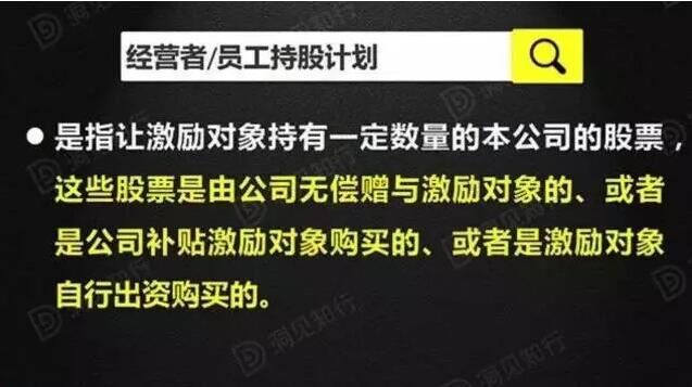 管理层收购主体一般是本公司的高层管理人员。收购资金来源分为两个部分,一是内部资金,即经理层本身提供的资金,二是外部资金,即通过债权融资或股权融资。收购主体在收购完成后成为公司的股东,从而直接或间接地成为公司的控股股东,达到经营权和控制权的高度统一。 管理层收购一般是上市公司对管理层进行激励采取的模式之一。 可供参考的案例有:美的集团、方大集团、宇通客车等。 09 经营者/员工持股计划