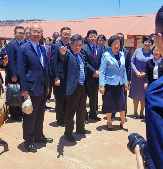 随后孙春兰副总理一行巡视了我们的驻地,视察了我们的宿舍,活动室,并兴趣满满的参观了我们的餐厅,厨房。亲切的的和正在为队员午餐备菜的林桂香师傅交谈,细致的向林师傅询问了队员们的伙食情况。她的殷切关怀令我们每个在场队员倍受感动,也徒然增加了我们对她的敬重和感谢之情。 离开医疗队前,孙春兰副总理协同随行的四位部长及相关人员热情的在医疗队驻地和医疗队全体队员合影。 合影后孙春兰副总理再次和队员们握手话别,直到她的车队一行驶出驻地,我们全体队员还沉浸在对刚才发生的一切的美好回忆中。 我和孙春兰副总理的这次亲密接触虽然是我人生长河中短暂的一瞬,但孙春兰副总理慈祥的面容和对我们医疗队员的亲切话语都深深印刻在我的脑海里。 如今我们伟大的祖国变的繁荣昌盛,在国际上享有较高声誉,这和我们拥有这样一批关心民众,体味民情,高瞻远瞩的国家领导人密不可分。 孙春兰副总理我们由衷地祝福您身体健康,阖家幸福,同时我们也请您放心,您对我们队员的嘱托我们一定会牢记在心,我们会在各自的岗位上兢兢业业工作,将“不畏艰苦、甘于奉献、救死扶伤、大爱无疆”的援外医疗队精神发扬光大。 (第22批援助马医疗队桑巴瓦医疗点队员骨科副主任医师 梁伟东)