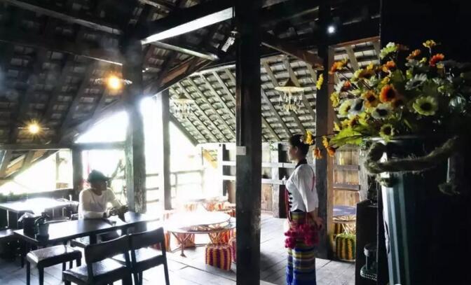 经过改造的布朗族民居,搞起了旅游接待。这样的房子既保留了传统民居的精髓,又针对一些具体问题做合理的改善,就地取材,让老屋获得“新生”。 游人穿行在老寨里,老屋与自然融为一体,整个寨子弥漫着城市居民向往的与世无争。 随着近年来人们对原生态旅游的追捧,地处边远的翁基古寨开始受到热爱民俗和生态旅游的人们的关注,来翁基寻古探幽的旅人多了起来。寨子里开起了客栈,但不多,客栈的名字写得像“筷子拼接起来”的一般,朴实而充满诚意。还有人回到山上开起了微店;爱音乐的小伙子组乐队开酒吧,唱自己创作的“布朗调”;还有人从山下考察回来,想在大榕树下搞个“民族歌舞实景演出”。 对古寨进行适度、合理旅游开发的呼声出现了。现代化的潮流不可阻挡,商业化也并不可怕,问题在于如何在发展过程中,保留好自己独特的文化,这需要政府、村民和外来者集体的智慧。 外来的保护团队开始进驻翁基,帮助村民进行民居的改造。他们也在思考,如何既保留传统民居精髓,又满足现代的使用需求?针对干栏式民居的隔音、防水、防鼠、采光等问题,寻找一些易于实现的改善方式。 经过他们的努力,一栋经由保护团队改造后的传统民居常年在翁基古寨对外开放展示,每个村民和游客都可随意进入参观。走进外观上原汁原味的传统民居,各种现代生活设施合理布置,十分便利,与景迈山少数民族生活方式融为一体,毫无违和感。在展览内容中,村民可以对实用的改造技术方法进行学习、借鉴,政府也引导村民开展传统民居的保护修缮,从而也使他们看到传统民居在未来旅游开发中的利用潜力。