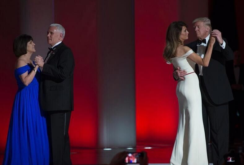 1月20日,在美国华盛顿,美国总统特朗普和夫人梅拉尼娅在就职舞会上起舞。在欢呼和抗议声中,唐纳德·特朗普20日中午在华盛顿国会山宣誓就任美国第45任总统,发表以“唯有美国第一”为主旨、以保护主义为主基调的就职演讲。