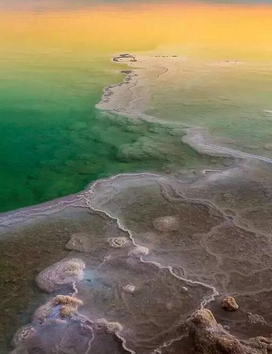 死海,位于以色列、约旦交界,是世界上最低的湖泊,世界上最深的咸水湖。死海中含有高浓度的盐分,为一般海水的8.6倍,致使水中没有生物存活,甚至连死海沿岸的陆地上也很少有生物。但是死海却没有死气沉沉,反而风光旖旎。