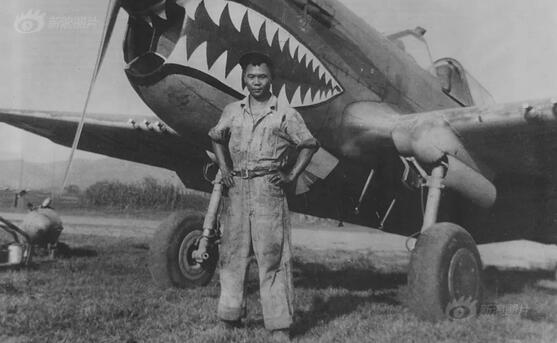 飞虎队里的美籍华人机械师Pak On Lee 这里题外话讲几句“飞虎队”名称的由来:P40战斗机的机头,漆的明明是鲨鱼头,为什么叫飞虎队,不叫飞鲨队? 原来,日本人是海洋民族,怕鲨鱼,所以机头的鲨鱼头是用来吓唬日本飞行员的。但是中国西南百姓知道老虎厉害,为了振奋士气,是为飞虎队。