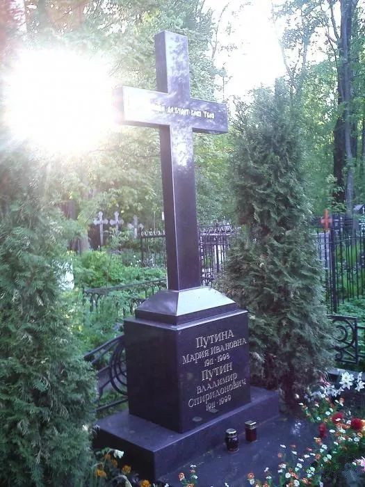 玛丽亚.伊万诺夫娜和弗拉基米尔.斯皮里多诺维奇的一生大部分时间都生活在圣彼得堡,去世后他们继续也留在这座城市之中。在他们埋葬之地的上方竖立着一个简单的十字架,台座上刻有普京父母的名字。普京父母安葬在谢拉菲莫夫斯基公墓,这座公墓也被视为战争纪念馆,许多在第一次世界大战中牺牲的士兵和在非人道封锁中死去的列宁格勒居民都葬在这里。 普京父母只是平凡的俄罗斯人,但也就是在这个平凡的家庭中诞生了俄罗斯的总统。