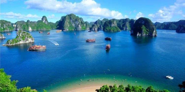 【下龙湾】 词:何辉 天空刚刚被洗过, 云儿慢慢回了家, 点点白帆飘过湾, 风行浪开海鸥起。
