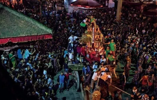 醒后,国王从释迦姓中找到一位符合所有条件的4岁小女孩,把她带到王室守护女神塔莱珠的神庙,将其敬仰为活女神:库玛丽女神。在盛大的因陀罗节国王会前来神庙接受活女神的祝福,在额头点上红色的朱砂痣提卡。 因陀罗节——尼泊尔的传统节日,于每年的尼历五月初八举行。节日长达8天。库玛丽女神会在节日期间环城游行,她由随从抱着登上战车,双脚从不接触地面。战车全部由10多个人负责拉着,靠人力前进,国王站在旧王宫的阳台上向库玛丽女神致敬。 (二)库玛丽女神的选拔 活女神会在12岁时退役,临近此时,活女神的守护者就会物色接班人,你可能从旅游书或文章上看到,活女神第一次流血就不再具备神能。例如划伤、掉牙齿流血、或是初潮。但实际上,早在发生这些事之前,库玛丽的看守人就已经在古加都释迦姓氏的人家中物色合适的候选人了。 我们纽瓦丽人(尼泊尔首都加德满都谷地的原住民)是古老的民族,拥有自己的语言和文化。我们中的一些人是佛教徒或者印度教徒,有的人两者兼是。 “库玛丽”就是纽瓦丽语中处女的意思,意为处女神。 如今对于库玛丽的选拔,并不像人们想象的那么严格,但亦有各种戒律。 首先,活女神必须来自于加德满都谷地释迦族的Baha家庭。释迦姓氏源自佛祖的家族,当释迦族的男孩完成一种叫Bare chuegu的仪式,并在仪式的4天里出家为僧后,他们就正式成为Baha中的一员。 然后,成为释迦族Baha的男人,不得与其他民族通婚。只有他们的孩子才具备成为活女神的资格。被选中的女孩必须在3-5岁之间,且身体上没有任何疤痕。除此之外,还有一个条件就是女孩子不能经历过纽瓦丽人传统的两种“假的婚姻仪式”的任意一种: 一种叫做Ihi,暨女孩在4岁至10岁之间,象征性的嫁给贝尔果。这是一种成长的仪式,希望我们能够有较为成熟的举止。另一种叫做bahrah,一般在10岁至15岁之间,有时候会比这个年龄小一些。女孩会被关到一个黑暗的没有男性的房间里,在其中呆12天,象征着嫁给太阳神。这些“结婚”仪式的完成被认为女孩不再是纯洁的处女,所以就不符合成为库玛丽的条件了。