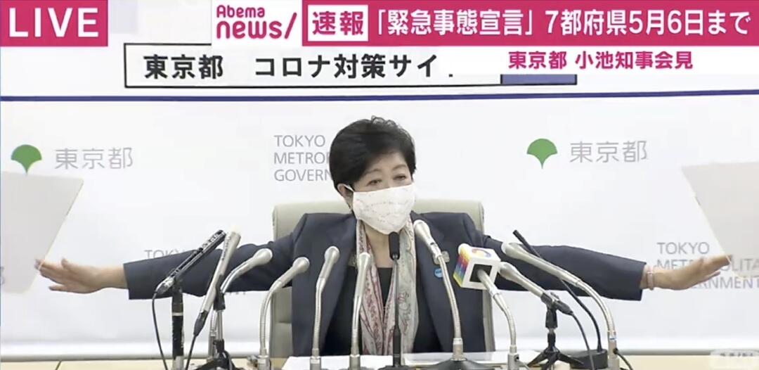 上周五下午,东京都知事小池百合子召开记者见面会,就东京都的防疫措施做出进一步约束和说明。这也是为应对4月7日日本首相宣布东京都、大阪府、福冈县等7个都府县进入“紧急事态”,地方政府作出的一次正式回应。