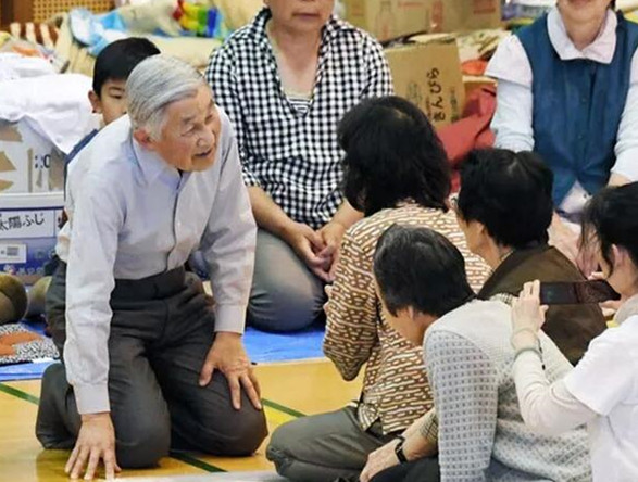 2016年日本当时的天皇看望熊本地震的受灾民众(2016年5月,熊本县南阿苏村) 1990年11月17日,云仙.普贤岳发生了相隔198年的喷发,长崎县岛原市等地受灾。 1991年6月3日的发生巨大火石流,当地消防队员、警察及报道相关人员等计44人死亡或失踪。明仁天皇、皇后1991年7月10访问云仙·普贤岳火山喷发灾区,在他们造访长崎县岛原市避难所时,是跪坐在那里安慰灾民的,这是明仁天皇即位后首次去灾区访问,也是能够确认的日本天皇首次跪坐在百姓面前。 从此以后,访问灾区时,跪坐在灾民面前安慰灾民,成了明仁天皇的一贯的姿态。在他1989年即位以来,从1991年7月10访问云仙·普贤岳火山喷发灾区,一直到2018年11月15日对北海道胆振东部地震灾区的访问,几乎有大的灾害,就有明仁天皇和皇后慰问访问的身影。在东日本发生大地震时,明仁天皇和皇后7周连续访问了一都六县的避难所,在访问避难所等处时,一般都是跪坐和灾民促膝谈心。 跪坐在灾民面前是对灾民的极大安慰 现在的日本天皇是“国民统合的象征”,不能参与政治,但是他们首先是日本全国最大的“大司祭”,进行延续二千多年的为日本国泰民康的祈祷活动,对于这些非常专业性的活动,日本的老百姓并不熟悉,因此在内心深处委托皇室来进行。 但是完成这些祭祀活动,也需要许多知识和功夫的,如需要天皇正座4个小时的“新尝祭”的祭祀活动,在老百姓那里就是放假一天的“勤劳感谢日”。 另一方面,由于天皇和皇室是日本神圣传统文化的代表,因此他们的存在对于百姓来说是一种心灵的安慰,而从明仁天皇开始,开始认真探讨“象征性天皇”的意义,而对国民的“安慰”,成了“象征性天皇”的一个重要的任务,他不承担政治的责任,但是由于皇室在精神上崇高性和神圣,当他跪在灾民的面前问寒问暖,使他崇高得如此谦和,神圣得如此温馨,这将会是怎样的一种感动深深地打动国民的心灵?在东日本大地震发生时,首相菅直人去看望灾民时会遭到灾民们的怒斥,但是当天皇和皇后跪在他们的面前和他们握手,抚摸他们的后背,为他们揉肩膀时,他们有的只是感动,纷纷说:有皇室,真好。 在北海道东川町,甚至出现表现去年9月当时的明仁天皇和皇后访问北海道受灾地时的雕塑作品,在这一作品中,明仁天皇和皇后是跪在那里和灾民谈话的,而三位灾民中有两名是盘腿坐在那里的,而有许多相片显示,这个作品是源于现实的。在许多时候,天皇访问灾区时,都是明仁天皇和皇后,跪在灾民面前,或跪坐在灾民面前和他们谈话的,而灾民却是盘腿而坐的。1995年1月17日,日本发生了阪神大地震,当时的明仁天皇和皇后在震后的1月31日,访问了受灾的神户市和淡路岛,据时事通信社照片,当时的明仁天皇是跪在地上和灾民们谈话,并安慰灾民们的,而灾民们一般是盘腿而坐的,再看时事通信社2011年4月27日所摄的当时的明仁天皇、皇后访问宫城县南三陆町避难所时的照片,也是这样的。 据说明仁天皇跪在灾民们面前问寒问暖,一直遭到保守势力的反对和批评,但是他一直将这种做法坚持到退位。 新天皇德仁会不会跪坐在百姓面前? 那么现在的新天皇--德仁天皇会不会继承他父亲明仁天皇的传统,跪坐在百姓面前呢?正像我们前面所说,作为天皇,都会有过硬的正坐的功夫,令和元年(2019年)的“大尝祭”已在今年11月14日18点30分到15日的0时30分进行完毕。在日本,一代天皇即位时所进行最重要的祭祀活动叫“大尝祭”,以后所举行的类似活动叫“新尝祭”。“大尝祭”中也有“夕之仪”和“晓之仪”,相信新天皇的正坐的功夫也是相当过硬的,他也把这种正坐,也就是跪坐的功夫用在访问灾区时的亲民活动上,而且在这次“大尝祭”的中心仪式“大尝宫之仪”中所使用的全国各地提供的特产食品,在“大尝祭”结束以后,提供给埼玉县的康复设施使用。本来按照传统是要埋在土里的,平成年明仁天皇在“大尝宫之仪”中所使用的这些食品,也是埋在土里的,这一变化则体现了新天皇进一步淡化“神格化”,进一步亲民的特征。 2011年6月4日午后,当时的皇太子德仁与皇太子妃访问宫城县三元町山下小学避难所时,就是跪坐灾民面前的,而有的灾民是坐在椅子上的。有一名受灾的女性曾向他们哭诉受灾的经过,皇太子妃紧握着她的手与她感同身受。 德仁天皇在5月1日的即位仪式上表示:“回顾往昔,上皇陛下从即位以来,长达30年一直祈愿世界和平与国民幸福,无论何时都与国民同甘共苦,用行动体现其内心的坚韧,并真挚地实施自己每一个职责。对上皇陛下展出的象征的姿态,衷心表示敬意与感谢。”在“即位礼正殿之仪”上宣读的致辞中,也表明了继承上皇作为“象征性天皇”的一贯做法,同时也出现了“贴近国民”等明仁天皇在继承皇位所发表的“正殿之仪致辞”中所没有的措辞。 新时代的两代天皇,正以他们独特方式,继续成为“日本国民统合的象征”,并以他们与以往天皇不同的行动,实现着他们贴近国民,疗愈心灵的不可代替的新的功能。 据宫内厅的消息,在12月下旬,德仁天皇皇后,将访问由于19号台风带来的大雨受灾的宫城县和福岛县,探望受灾的人们,这是德仁天皇继承皇位后首次访问灾区,如果德仁天皇也是跪坐着和灾民谈心,他将是日本历史上跪坐在百姓面前的第二位日本天皇。