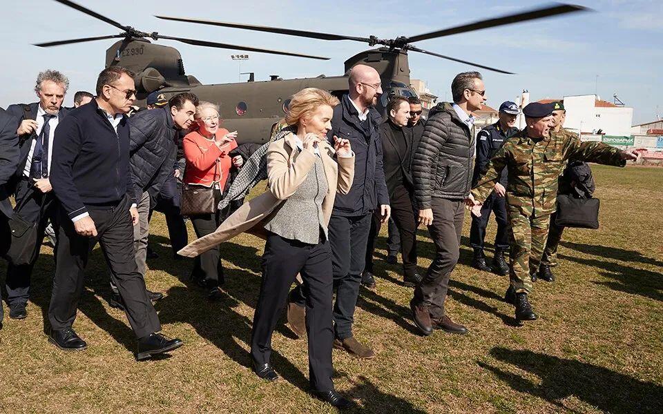 图片:上周二,欧盟“三巨头”——欧盟委员会主席冯德莱恩、欧盟理事会主席米歇尔、欧洲议会议长萨索利,以及欧盟轮值主席国克罗地亚总理普林科维奇、副总理兼内政部长博伊诺维奇,“旋风式”访问希腊边境地区,支持希腊应对不断加剧的难民危机。 ![]()
