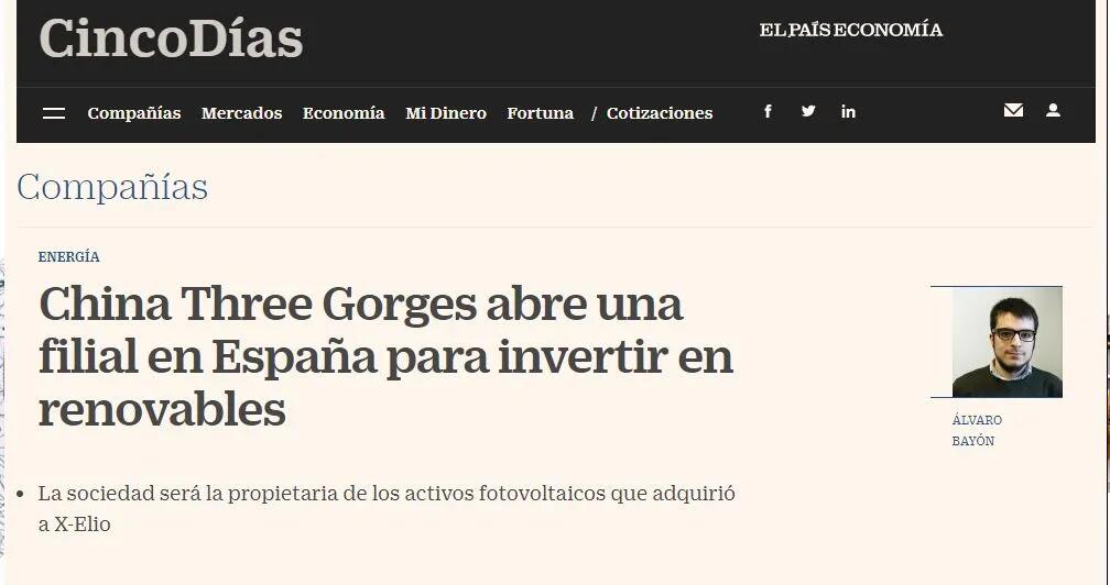 12月11日讯 根据西班牙《五日报》的报道,中国能源巨头“中国三峡”已经登陆西班牙。该公司已经在西班牙拥有一家子公司,作为西班牙的控股公司来管理在该国的投资。