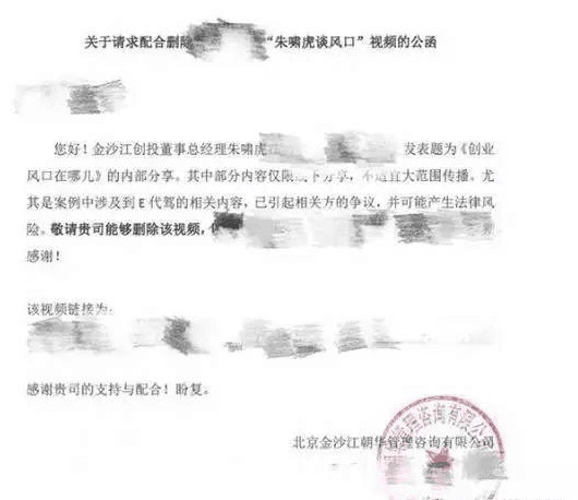 图:要求删除视频的公函截图 事实上,类似的表述,朱啸虎有过很多次。对于这位精明的投资者,业内唯一没有争议的评价似乎就是:争议人物。 押宝充电 爱玩王者荣耀的朱啸虎,把新战场选在了共享充电项目上。 他是去年入局的。11月底,他在杭州见到小电科技唐永波,半小时后决定投资。 期间有个小插曲。唐永波见面就问“你手机还有电吗”,本想就此打开话题,不料,朱啸虎回答“有啊”,差点终结话题——他在高铁上把手机充满了电。 好在他马上想起了iPad。从高铁站到酒店一路很堵,他一直在用iPad打王者荣耀,已经没电了。 没过几天,朱啸虎告诉一位下一轮的潜在投资者:“我找到了一个和共享单车一样的项目,财务模型还要更好。” 战争的号角自此吹响。 5个月后,小电科技宣布融资消息,领投者包括金沙江创投、天使投资人王刚。后者在滴滴、ofo项目上均与朱啸虎有过合作。 一场资本乱战迅速打响。 紧接着,街电科技、来电科技都发布了融资消息。有媒体统计,从3月底开始的40天里,共享充电领域发生了11笔公开融资,超过30家机构入局,融资金额达到12亿人民币,这相当于2015年共享单车刚出现时融资额的近5倍。 抢滩入局者中,不乏错失共享单车风口的投资机构。 他们担心历史重演。共享单车的模式起先也不被看好,结果,朱啸虎这样的炮手进入第一轮后,会迅速拉来包括腾讯系、阿里系的数家大型机构进入后几轮火拼,奠定战局。早期错过的那些机构,就连喝汤的资格都没有了。 捕捉到饿了么、滴滴、ofo 几只独角兽后,炮手朱啸虎被称为能自造风口的男人。 有业内人士评价,共享充电是典型的朱啸虎式投资项目:原本是小生意,经由猛虎下山砸大钱的方法,变成大生意。 也有很多人不看好这个领域。 陈欧以3亿人民币注资街电科技后,王思聪发了一条朋友圈“共享充电宝要是能成我吃翔,立帖为证”。 朱啸虎倒是没有卷入两人的口水仗。他忙着推动小电科技的下几轮融资——5月8日,小电科技宣布完成B轮融资,加上此前两轮,总额超过4.5亿人民币,成为共享充电领域首家完成B轮的公司。 这是朱啸虎喜欢的速度。 小电科技的天使轮与A轮只隔了10天。“快速融资是为了筑起资本壁垒”,朱啸虎认为,移动互联网创业窗口很短,快就是核心。 他判断:共享充电项目在6-12个月内就会见分晓。 单车恶战 几个月前,朱啸虎也做过类似判断:共享单车三个月可以结束战斗。 那是2016年9月。 他显然低估了这场战争的复杂性。 9月以后,从寒冬中逐渐复苏的资本市场,如饿狼般扑向了共享单车的战场。作为主角的摩拜和ofo ,成为几年来资本进入最密集的项目。 在资本的裹挟之下,两家创业公司的融资速度、业务扩展速度都进入了快车道,估值也从几千万美元,飙升到20亿美金以上。马化腾曾经感慨,共享单车的发展速度比当年的滴滴还要快。 至今,大战还在升温。昨天有消息传出,两家正在寻求新一轮融资,摩拜寻求6亿美金,ofo 寻求5亿美金。 朱啸虎大概也没有料到这样的烧钱规模。 最初对ofo 感兴趣,朱啸虎只是判断:这是一门赚钱的生意,高频、易管理、商业逻辑简单。他计算过,ofo 在校园一天可达200万单,一年利润可以做到3、4千万,将来在A股上市没问题。 他投得很保守。 2016年1月,ofo创始人戴威应邀去见朱啸虎的时候,心理预期是估值一个亿。当时,ofo 覆盖5所学校,日订单1万多。 朱啸虎给打了个六七折。 第二次见面,双方签订了融资意向。 2016年2月,ofo宣布完成1500万元的A轮融资,由金沙江创投领投,东方弘道跟投。 此时巨头们还在犹豫。 朱啸虎先是把项目介绍给了程维和腾讯,但前者正忙于与uber厮杀无暇他顾,后者在摩拜和ofo之间举棋不定。 随后,他又拜访了红杉资本沈南鹏、高瓴资本张磊,试图说服他们加入小黄车阵营。不过,两家当时都已经签了摩拜。张磊倒是表示愿意两家都投,被朱啸虎拒绝了。 一直到9月,滴滴宣布战略投资ofo,市场开始真正沸腾。朱啸虎趁势在朋友圈立下军令状:共享单车的战争将在90天内结束——这为多家媒体贡献了好标题。 可惜战争没有如期结束。此后的恶战中,冲锋陷阵的朱啸虎当起了ofo新闻发言人。 他没有错过这场共享单车战争里的每一个重要节点。如今,在搜索框里输入朱啸虎、ofo,你可以得到超过16万条搜索结果: