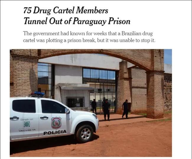 2020年1月19日,巴拉圭临近巴西边境处的一所监狱发生越狱事件,至少75名囚犯逃跑。