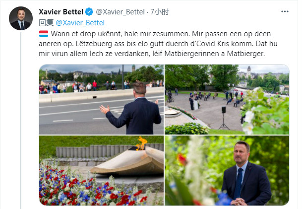 新州农业厅长Adam-Marshal确诊感染了新冠病毒。他本周一在悉尼一家Paddington餐厅用了晚餐,该餐厅后来被列入疫情场所。Marshall先生在一份声明中说:“今天早上8点刚过,新州卫生厅正式通知我,我的新冠检测结果呈阳性。” 卢森堡 今日国庆日,亨利大公、首相、国会主席发表了演讲,主题围绕这一年多发生的疫情。为因新冠感染去世的800多人默哀一分钟,并对健康危机做出贡献的人们表示感谢。