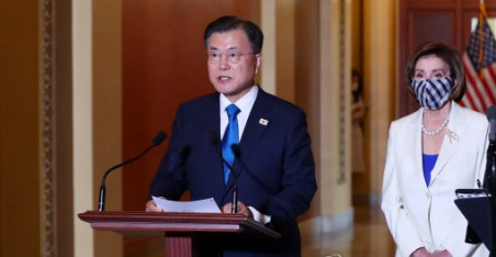右为美国众议院议长南希·佩洛西。韩联社 正式访问美国的韩国总统文在寅20日会见美国众议院各党领袖,强调韩美合作克服新冠疫情。 文在寅在与众议院高层座谈前,与众院议长南希·佩洛西一起发表简短演讲表示,团结与合作是战胜病毒的必由之路。文在寅表示,大韩民国成为经济、文化、防疫领先的国家得力于民主,而韩国民主主义的根基是稳固的韩美同盟,韩美同盟是世界上最模范的同盟,今后两国也将朝着同一方向前行。 文在寅指出,每当韩国陷入困境时,美国国会总是给予大力支持,希望本次启动的韩美对话能够成为携手抗击疫情、复苏经济、深化韩美合作、加强全球团结的契机。他还提及美国完成对朝鲜政策评估一事,称韩美两国在这一过程中进行了密切协作。 佩洛西表示,驻韩美军让两国的友谊更加深厚,希望韩朝人民之间的交流也能活跃起来。另外,佩洛西就慰安妇问题表示,2007年美国众议院通过了慰安妇决议,日本前首相安倍晋三在任时,她也曾多次当面谈到慰安妇问题,希望看到正义得以伸张。 三.韩国食品药品安全处(以下简称“食药处”)21日召开莫德纳疫苗最终检验会议,决定向该款疫苗颁发进口许可。莫德纳成为继阿斯利康、辉瑞、杨森之后,第四款获准入韩的新冠疫苗品牌。 巴基斯坦 巴基斯坦信德省政府周四在该省新冠肺炎工作组会议中表示,鉴于该省的疫情在开斋节后持续增长,决定维持对新冠肺炎所实施的限制。