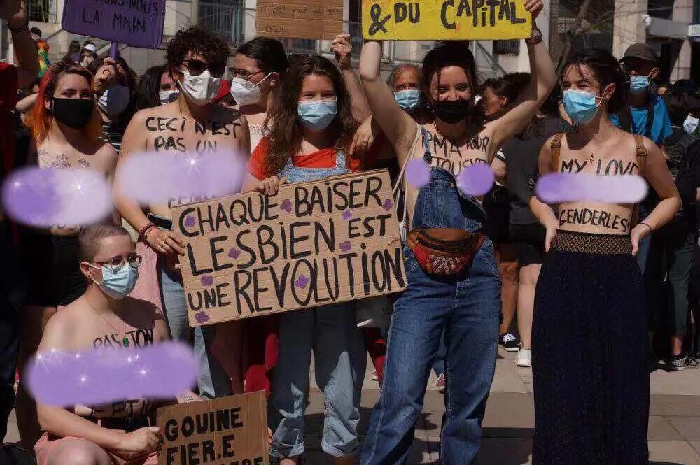 本周六起,迪士尼新港湾酒店开始给60岁以上的老年人和高风险群体接种疫苗,计划每天注射1500次的辉瑞疫苗。 法国人一听是辉瑞疫苗,积极性立马被调动起来,酒店门外排起了长队,这里5月份将开启阿斯利康疫苗专用通道,那个时候估计就是另外一番景象了... 二.昨天下午在里昂的Radel广场,有600多人参加“女同志我骄傲,女同志我自豪”的街头半裸示威游行;就在游行快要结束的时候,遭到极右派的暴力破坏!