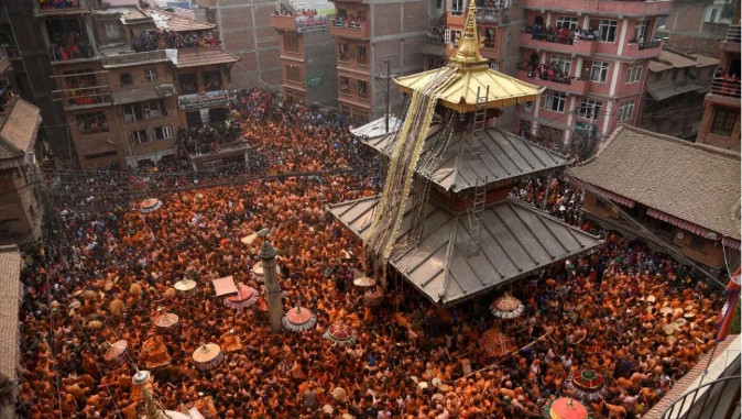 在节日期间,当地民众聚集起来,游行队伍中载有32个轿马,轿马上载有多个神灵和女神的偶像。人们在游行队伍中用sindoor(橙色朱红色的粉末)互相涂抹,并按照传统音乐的节奏唱歌和跳舞。 三.4月17日下午,尼泊尔总理奥利在总理府召开多党负责人会议,就当下的疫情形式、政治形势展开讨论。 会上,主要反对党尼泊尔大会党的主席德乌帕等人要求尼泊尔政府尽快行动,让与美国千年挑战公司(MCC)的现有合作计划尽快在联邦议会获得通过。