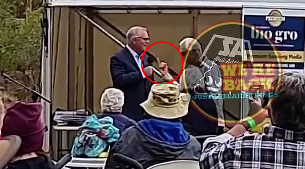 总理周日出席了克莱尔花园节,他走上讲台向一小群人发表了讲话。这时,一名不满的男子从莫里森身边随意走过,在距离莫里森脸一米远的地方把中指甩了过去。 一名旁观者正好拍下这一刻,但莫里森似乎对这一事件并不在意,继续他的演讲,而一些听众则笑着低语。