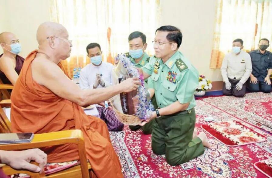 5月31日当天,敏昂莱前往帕安镇区瑞克彬僧院拜访了住持巴德纳咖大师。军方接管政权的4个多月以来,敏昂莱大将已经多次拜访国内的著名僧人,并向高僧所在寺庙进行布施。 除了大师外,敏昂莱大将还前往拉敏僧院、美勃僧院、莫葛僧院及朵噶礼僧院,向僧院高僧递交了近期国内正在开展的宗教相关工作。据悉,敏昂莱大将此次拜访的巴德纳咖大师,在民盟政府执政期间,多次公开举行了支持军方的活动。 二.掸邦北部消息,6月2日下午5点30分左右,贵慨镇曼杰与廓隆村之间,若开军(AA)、德昂军(TNLA)联军与军方部队爆发战事。交火期间,军方除了出动直升机外,还发射了不少于10枚炮弹进行攻击。 三.据悉,东盟9国就一项关于缅甸的联合国大会决议草案提出建议,呼吁撤销对缅实施全球武器禁运政策的条款。