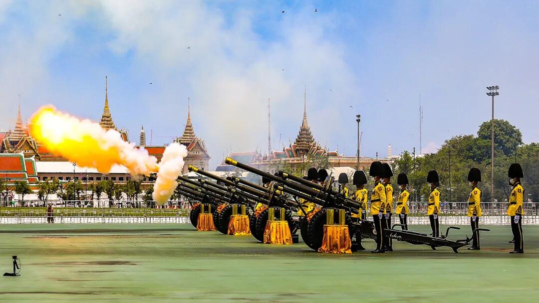 三军司令部今天均在中午12时,同步各鸣21响鸣礼炮志庆素蒂妲王后殿下华诞。素蒂妲王后殿下出生于公元1978年6月2日,于2019年5月1日与第十世王玛哈哇栖拉隆功陛下成亲,并在第十世王举行加冕大典当天,即2019年5月4日获赐封为王后殿下,迄今已在位2年。
