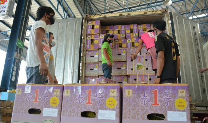 四.泰国媒体报道,6月3日,泰国尖竹汶府府尹素提对外透露了本府水果出口的相关情况。据统计,本产季尖竹汶府的榴莲对华出口较去年同期呈成倍增长态势。