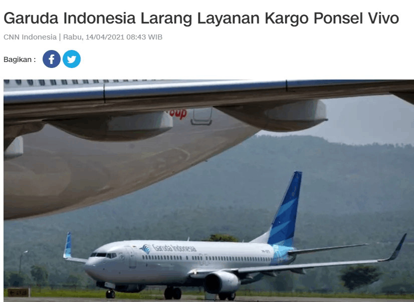 “我方感谢中国政府的关怀。我们也希望印尼的穆斯林公民,遵循中国有关通函的规定。“阿齐斯4月13日表示。 三.印尼鹰航编号QA/007/IV/2021的通知函中写道,印尼鹰航将停止航空货运接收或运输所有Vivo品牌的手机。零配件,配件和手机壳或不带锂电池的机壳可以空运。