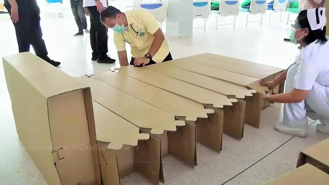 五.泰国国内一所医院和建筑材料制造大厂合作,引进能载重100公斤的「纸病床」,盼能协助解决当前疫情延烧,医院病床数告急的问题。