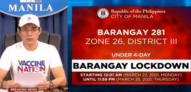 上述社区将实施“加强型社区隔离”(ECQ)措施,以延缓新冠病毒的快速传播。封锁期间,市政府将进行例行疾病监测、大规模接触者追踪、新冠检测以及突发公共卫生事件快速风险评估。 根据3月20日公布的数据,马尼拉市单日新增616例新冠病例,使得该市活跃病例来到2388例,这也是自疫情爆发以来的最高数字。
