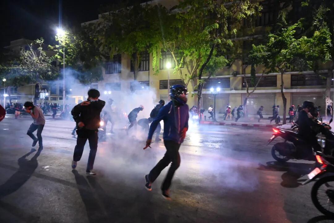 比亚中将在回顾当天冲突情形时表示,在示威者刚开始向皇家田广场方向游行时,差纳颂堪警局局长萨侬通过扩音器发布警方的通告,示威活动已涉嫌违法,必须立即停止集会,但示威者并没有听从劝告,仍然向皇家田广场方向推进,期间还撤除了警方布置的警戒,并打伤了在现场的警察,破坏了监控器等公共物品,还使用了木棍、铁棍等武器,并撤除了警方设置的集装箱等障碍。 四.泰国反政府抗议团体「重启民主」(REDEM)20日在皇家田广场举行集会活动,期间集会者与警方爆发冲突,警方先喷射高压水柱驱散集会者,但集会者没有退后,警方又发射橡胶子弹以示警告。在这次冲突中,不仅有警察和集会者受伤,还有记者头部被橡胶子弹击中。