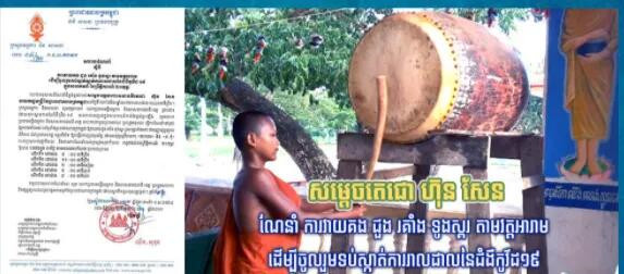 在洪森总理的指示下,宗教事务部部长陈速坤23日签发通告,要求全国寺庙每日打5次鼓。时间分别是:凌晨5时、中午11时、下午2时、傍晚5时和晚上8时。