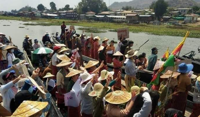 四.3月11日,勃固市的2个静坐示威队伍都遭到军警的开枪驱逐,至少15人被抓。此外,德林达依省土瓦市的民众表示,3月11日晚9点30分,土瓦市杰萨彬街区,军警开枪致使名叫吴温莱吞的男子腋下中枪,不幸身亡。