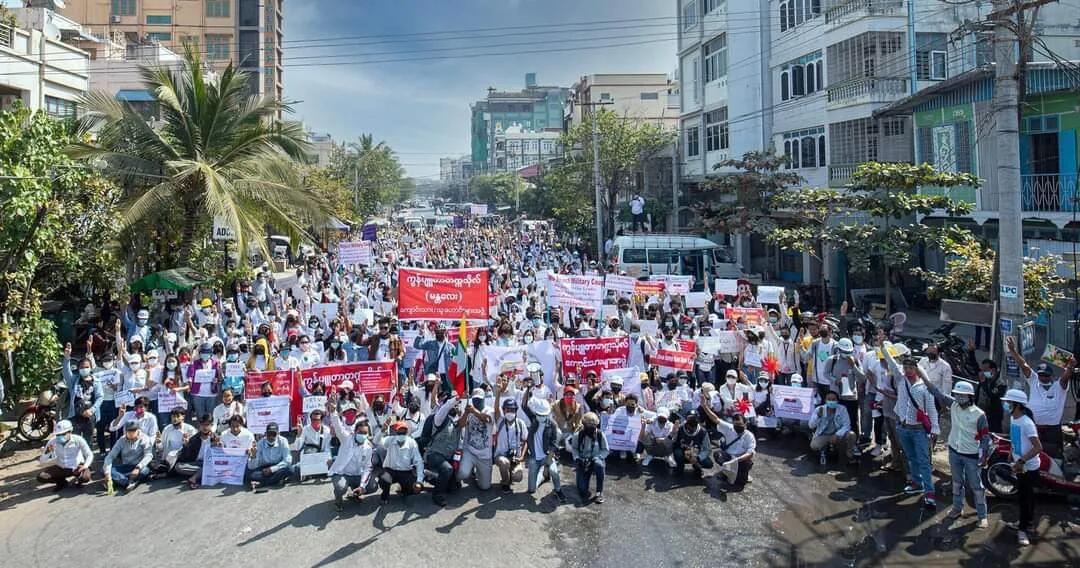 名单包括武装部队总司令敏昂莱、敏昂莱副手索温、目前担任代理总统的退役将领明穗、被任命担任国防部长的上将米亚吞乌,及被任命担任交通部长的上将丁昂山等。 另外,美方也制裁由缅甸军方或安全部队持有、控制或相关联的3个实体,包括“缅甸红宝石企业”、“缅甸帝王翡翠公司”与“Cancri宝石与珠宝公司”。 美国财政部表示,今天遭制裁人士与实体的所有资产与资产权益,以及直接、间接或与其他遭黑名单人士共同拥有50%以上的任何实体,凡是在美国或由美国他人持有或控制,都将遭到冻结,且必须向财政部外国资产管制办公室报告。 三.游行继续扩大,疫情防控系统面临崩溃 据了解,自国防军2月1日接管政权以来,国内局势持续动荡。由医疗人员等行业带头发起的抗议游行及罢工行动席卷全国。与此同时,本就脆弱的防疫体系和冠病检测系统也因此来到了崩溃的边缘。