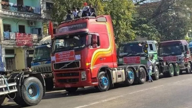 缅甸货物运输商们告诉记者,随着缅甸示威抗议活动的加剧,缅甸的货物运输,除蔬果货车外,其它货车从2月8日起几乎全部停运。 缅甸长途货运商协会秘书吴昂莫称,近期货物流通方面,除食品以外的货物,包括建筑材料、五金产品等已经没有运输了,货车们都停运了。从2月8日起急剧减少,然后到现在几乎都停运了。 仰光市批发市场之一的莽应龙货物交易站,对外出口的大米、碎米和豆类以及其它五金产品,已经没有货车进入。只有厨房用基础食品,如洋葱、土豆等进入交易站,从伊洛瓦底省,勃固省和掸邦南部的蔬果也在进入。 缅甸大量铁路停运 缅甸运输通讯部下属缅甸铁道的1000多名工作人员,于2月11日示威罢工。由于罢工,仰光火车已经停运。