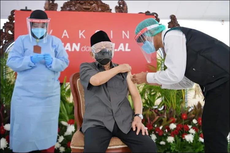 随后,印尼卫生部长布迪(Budi-Gunadi-Sadikin)就自费疫苗独立接种计划进行以下指示: 独立疫苗计划使用的疫苗,必须与印尼政府现有疫苗品牌不同,以免对政府免费疫苗计划造成影响。 疫苗必须由公司购买,并且免费提供给员工。 独立疫苗接种必须上报印尼国家资料库。 三.77岁的印尼副总统接种中国科兴疫苗,同时鼓励印尼年长者接种77岁的印尼副总统马鲁夫.阿明(Ma-ruf-Amin)于2月17日接种了中国科兴疫苗,他表示:“感谢真主,没有任何问题,不痛,不晕,感觉很好。”